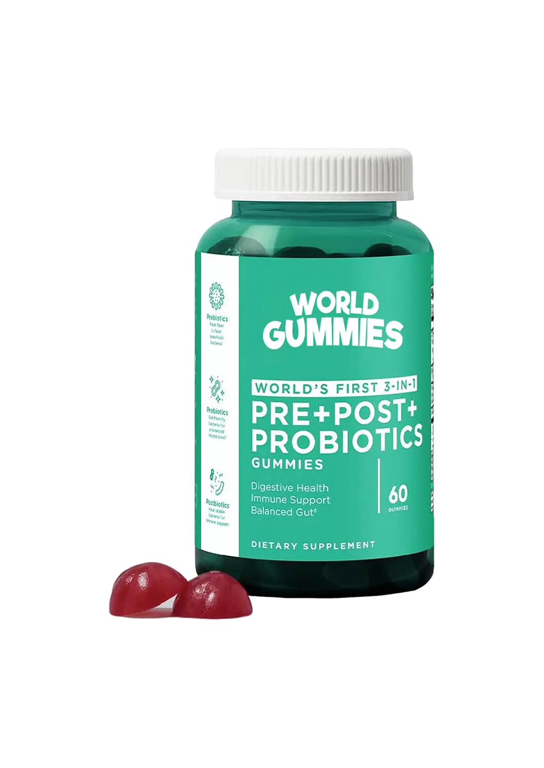 Say hello to the World’s First 3-in-1 Pre-Post-Probiotic Gummies! If you’re wondering what all that means, we’ll make it easy to digest: prebiotics provide fuel for probiotics, which help support digestive health. Postbiotics are stable bacterial strains which offer immune support.† The three of them together in a delicious gummy for the very first time? Now that’s a gutsy move worth celebrating!